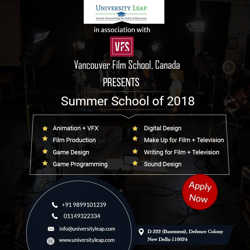University Leap is a team of study abroad education consultants in Delhi. Observing the interest and passion of so many students in films, designing and television, our team is partnering up with the Vancouver Film School, Canada on the upcoming Summer School 2018 programme.